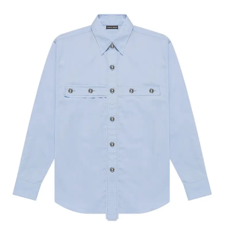 The Seventh Heaven Crucifix Button-Up Shirt is a bold statement piece that combines modern streetwear with spiritual symbolism. Crafted from premium, breathable fabric, this shirt ensures comfort and durability for everyday wear. Its standout feature is the intricately designed crucifix on the front, formed entirely from buttons, offering a unique, eye-catching detail that elevates any outfit.